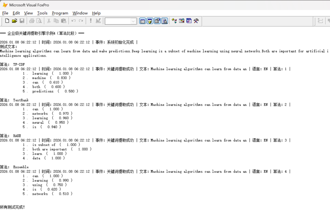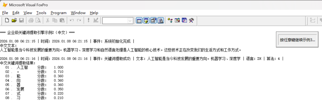 在借助 VFP AI 插件完成会话上下文管理时,其中的关键词提取,算法太简单了。所以,借助 VFP AI 插件,完成了一个近3K行的企业级关键词提取引擎。