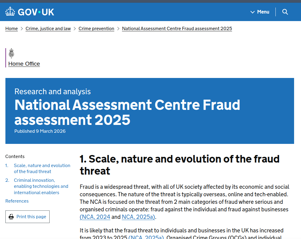 欺诈已不再是个别犯罪分子的偶发行为,而是演变为一种具有高度组织化、产业化特征的全球性威胁。根据NAC 2025年的评估,英国社会各阶层均深受其害,其经济后果与社会创伤日益加剧。当前的欺诈威胁呈现出鲜明的“海外化、在线化、技术化”三重属性。有组织犯罪集团(OCGs)作为主要实施者,其运作模式已完全商业化,专注于通过规模化扩张犯罪模型来最大化非法利润。