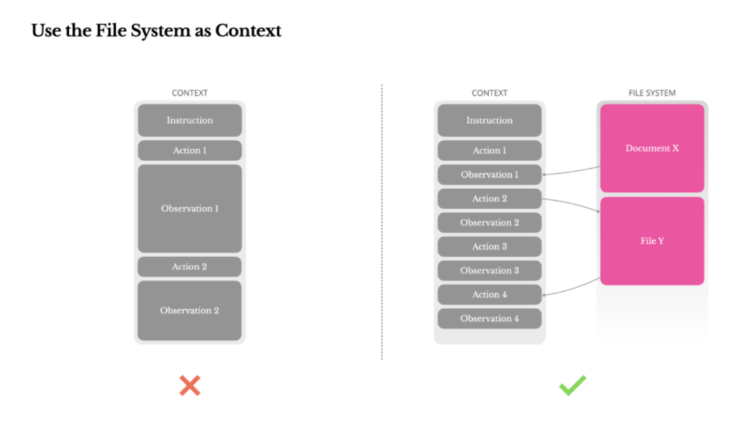 模型按需读写文件,将文件系统不仅当做存储,更当做结构化、外化的记忆。