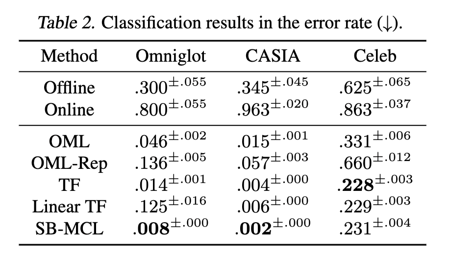 我们在大量基准任务上进行了广泛实验,结果表明:SB-MCL 不仅取得了卓越性能,且显著降低了资源消耗。代码已开源:https://github.com/soochan-lee/SB-MCL。