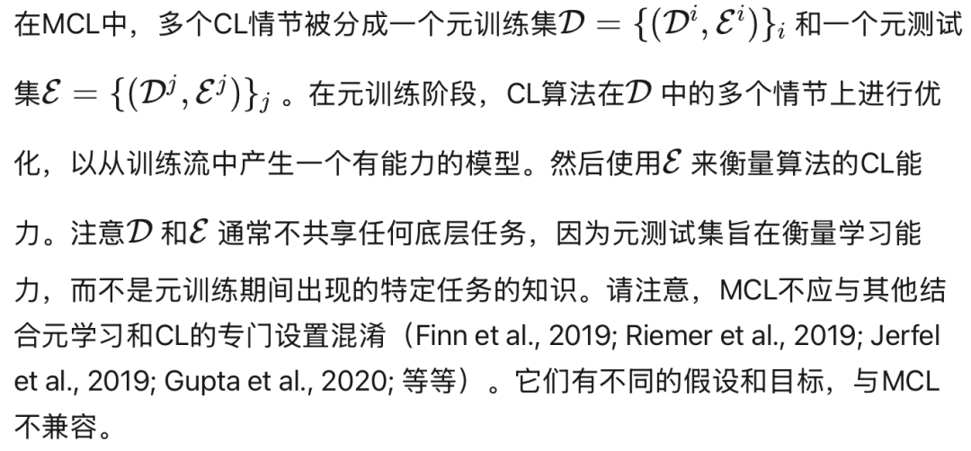 关于 MCL 及元学习与持续学习其他结合方式的详细综述,读者可参见 Son 等人(2023)。
