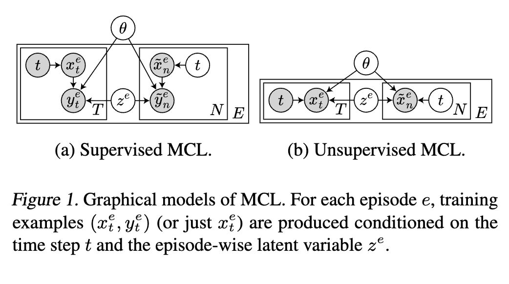 从这一视角出发,将训练数据流输入自回归序列模型并更新其内部状态——在语言建模文献中,这一过程被称为上下文内学习(in-context learning)(Brown 等,2020)——即可视为一种持续学习(CL)。在 MCL 框架下,该序列模型可在多个持续学习任务序列(episodes)上进行元训练,从而学会执行 CL。作者证明:Transformer(Vaswani 等,2017)及其高效变体(Katharopoulos 等,2020;Choromanski 等,2021)相较于基于 SGD 的方法,取得了显著更优的性能表现。