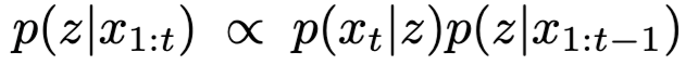 贝叶斯法则提供了一种基于前一时刻的后验分布作为当前时刻先验、从而逐步更新知识的原则性方法,即: