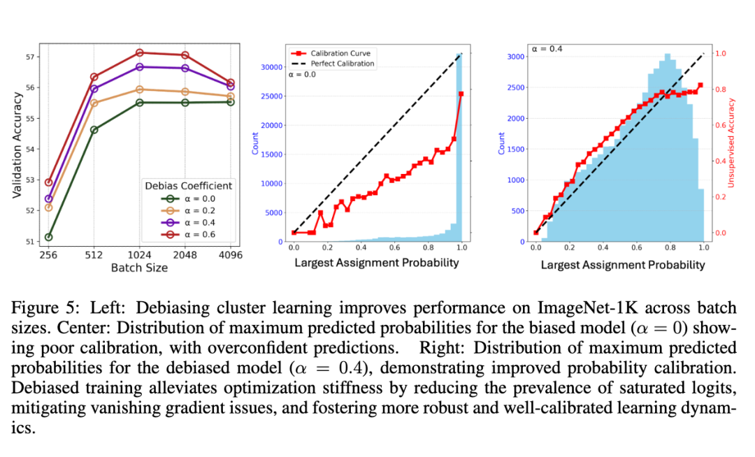 表3、图5与图6中的实验结果表明,这一轻量级改进在不同任务与批次大小下均能持续提升性能。它还能有效“软化”过度置信的分布——与监督学习中交叉熵损失下的标签平滑作用类似——从而避免梯度消失问题。