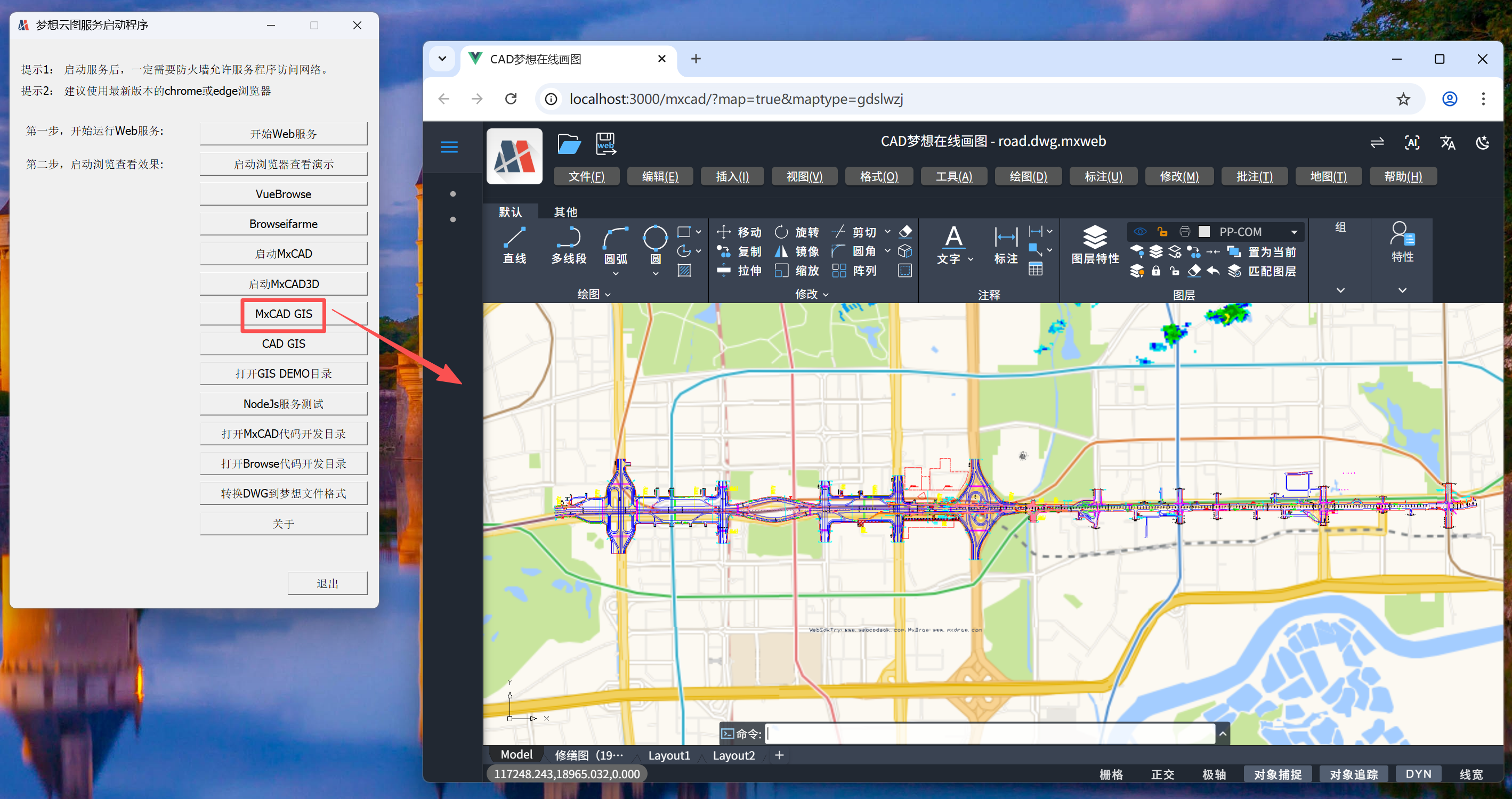 展示 MxCAD 与地理信息系统(GIS)的集成方案: