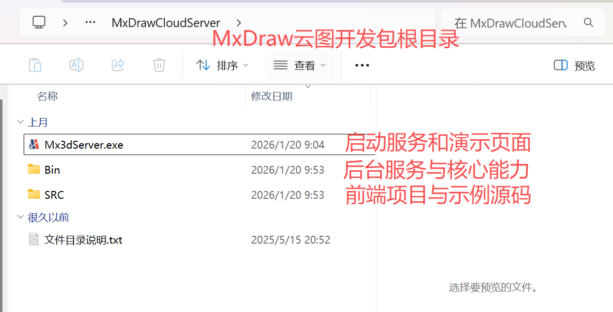 MXDRAWCLOUDSERVER1.0_XXX_TRYVERSION (其中XXX为云图开发包版本号) └─ MxDrawCloudServer (云图开发包根目录)