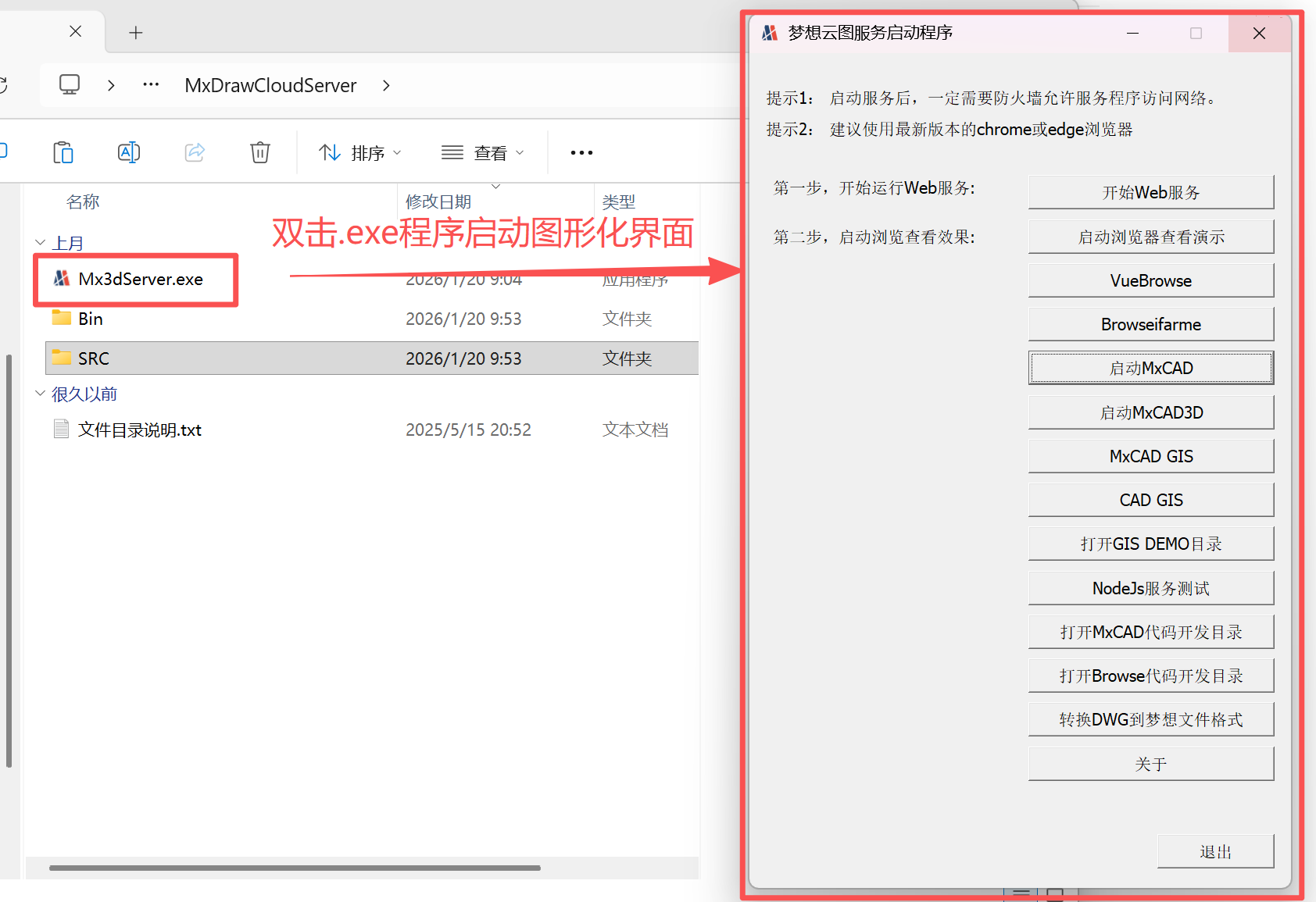 提示:首次运行时,请在 Windows 防火墙中允许 Mx3dServer.exe 的网络访问权限,以确保服务可被正常连接。建议使用最新版 Chrome 或 Edge 浏览器获得最佳体验。