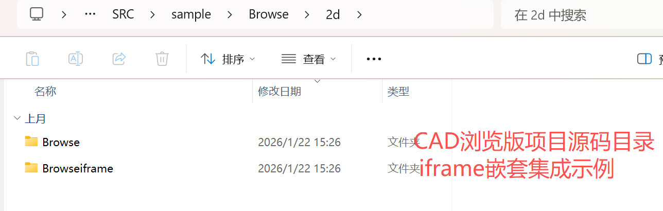 MxDrawCloudServer └─ SRC └─ sample (前端项目示例代码目录) └─ Browse (CAD 浏览版项目示例) └─ 2d └─ Browseiframe (iframe嵌套集成示例) └─ Browse (CAD浏览版项目源码目录)