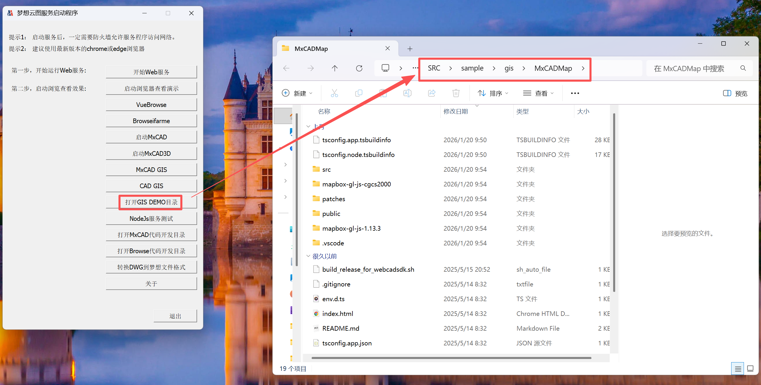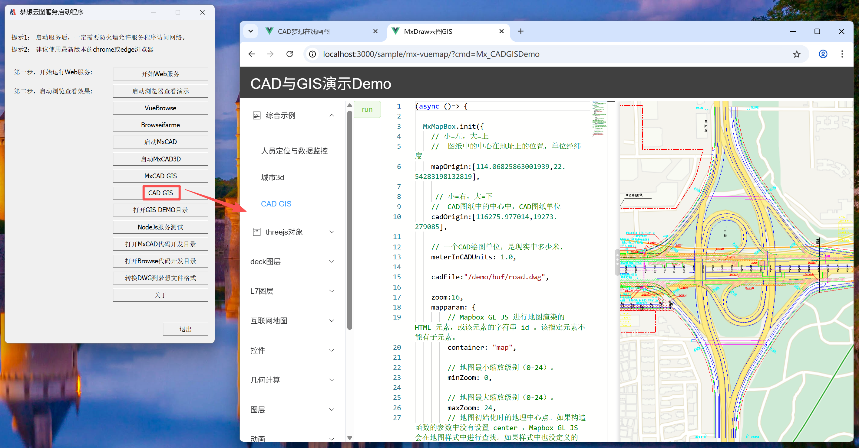 MxDrawCloudServer └─ SRC └─ sample (前端项目示例代码目录) └─ GIS └─ MxCADMap (GIS+CAD项目源码目录)