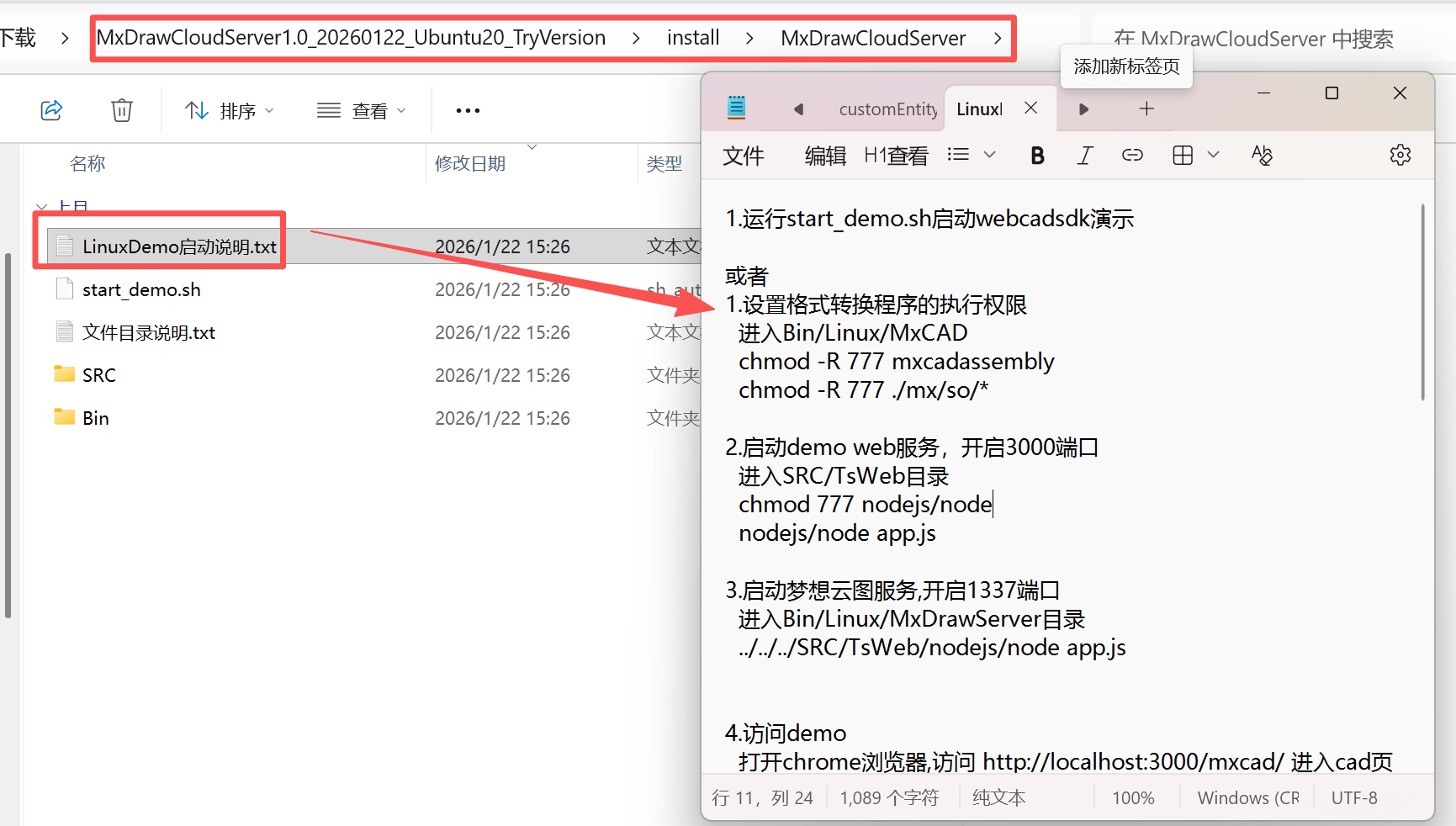 Mx3dServer.exe(Windows)与 start_demo.sh(Linux)是 MxDraw 云图开发包的统一启动入口,用于一键初始化整个 CAD 云服务环境。它们屏蔽了后台服务配置、端口绑定、依赖启动等复杂细节,让开发者或用户只需“双击”或“执行脚本”即可进入演示状态。