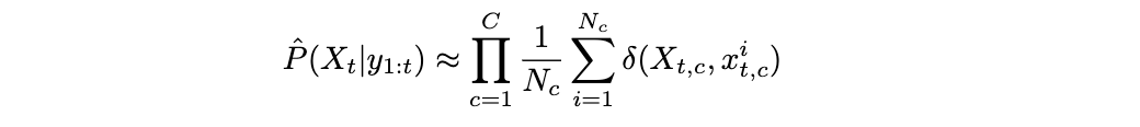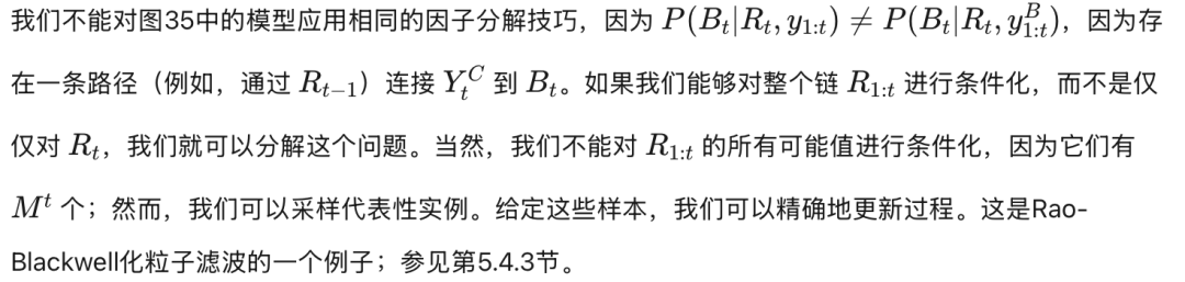 结合粒子滤波与分解的信念状态 可以将粒子滤波与Boyen-Koller算法(参见第5.1.1节)结合使用,即通过