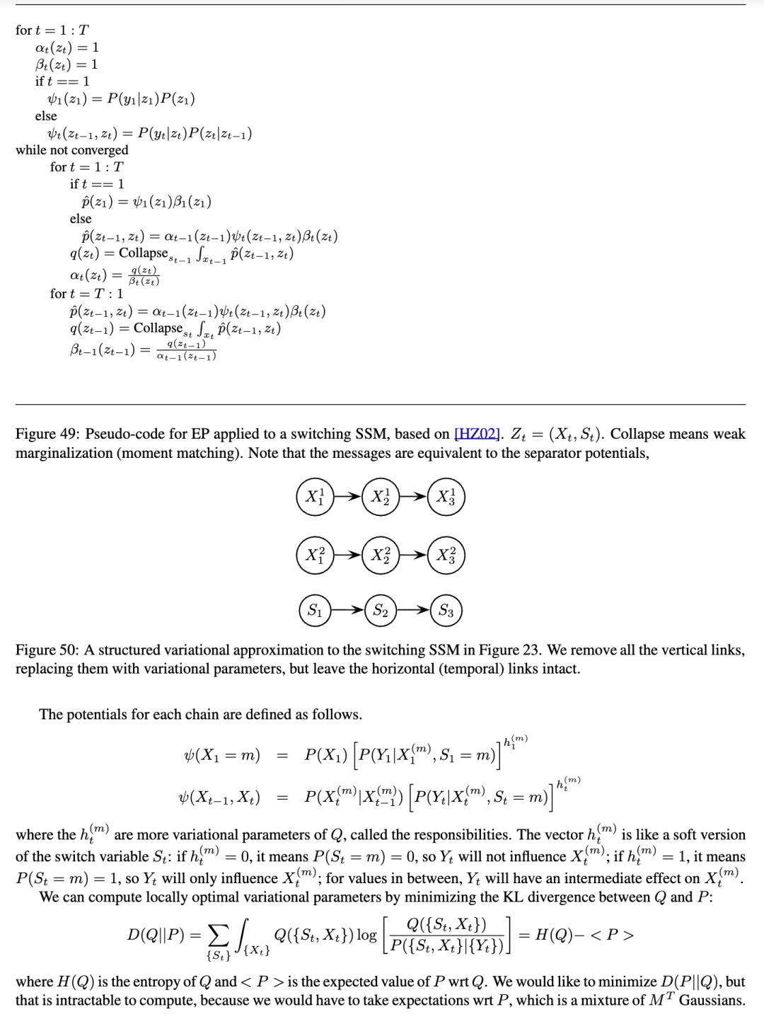 变分式方法在第??章中讨论,可以以直接的方式应用于DBN。其中一些方法,如结构化变分近似和变分EM,使用第4节中的精确推断程序作为子程序。