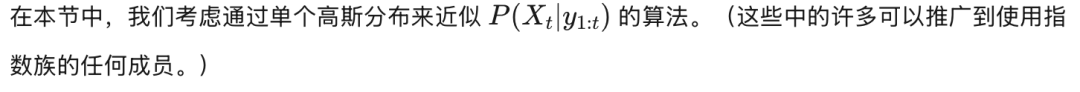 我们已经在第5.1.1节中遇到了ADF,其中我们假设信念状态可以表示为离散边际的乘积。在本节中,我们假设信念状态由高斯分布表示。目标是找到这个高斯分布的参数。