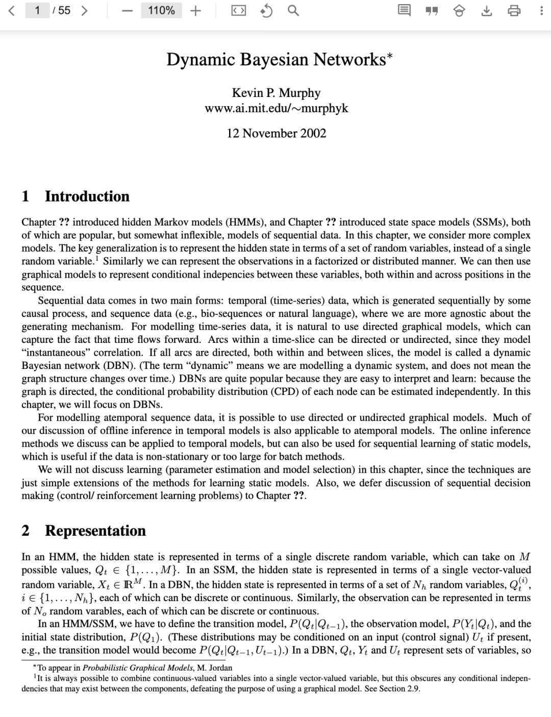 Dynamic Bayesian Networks 是一篇综述性论文,其核心重点在于系统地介绍和分析动态贝叶斯网络这一强大的概率图模型框架。