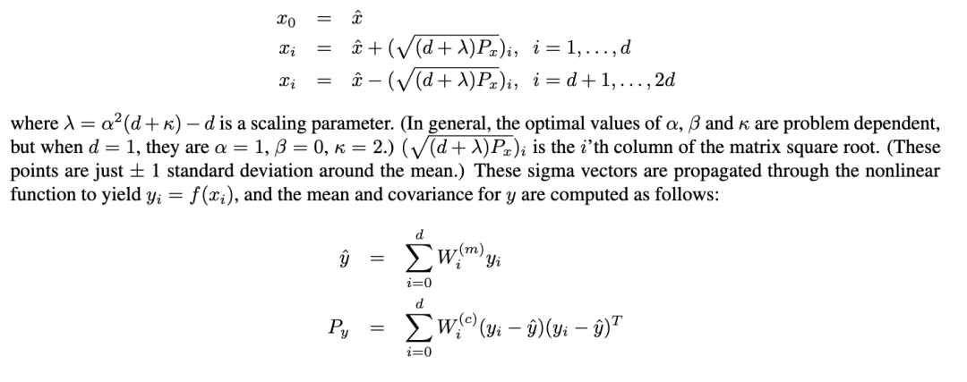 无迹卡尔曼平滑器 可以对后向通过的 β 或 γ 版本应用无迹变换,得到无迹卡尔曼平滑器。我们把细节留作练习。