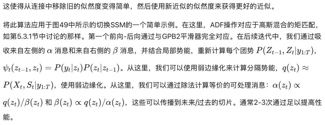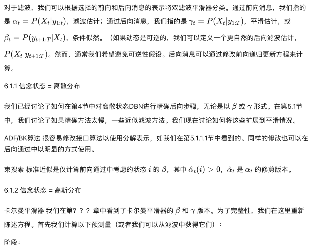 ADF/矩匹配平滑器 我们将在第6.1.3节的切换SSM中讨论矩匹配平滑器的上下文中,以及第6.2节的期望传播上下文中讨论。