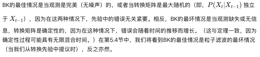 BK算法的准确性取决于我们用来近似信念状态的簇。精确推断对应于使用一个包含所有接口节点的单个簇。最具侵略性的近似对应于每个变量使用一个簇(“完全分解”近似)。