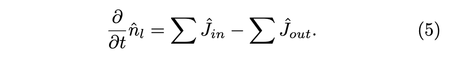 对于玻色-哈伯德哈密顿量(公式(2)),我们得到以下连续性方程: