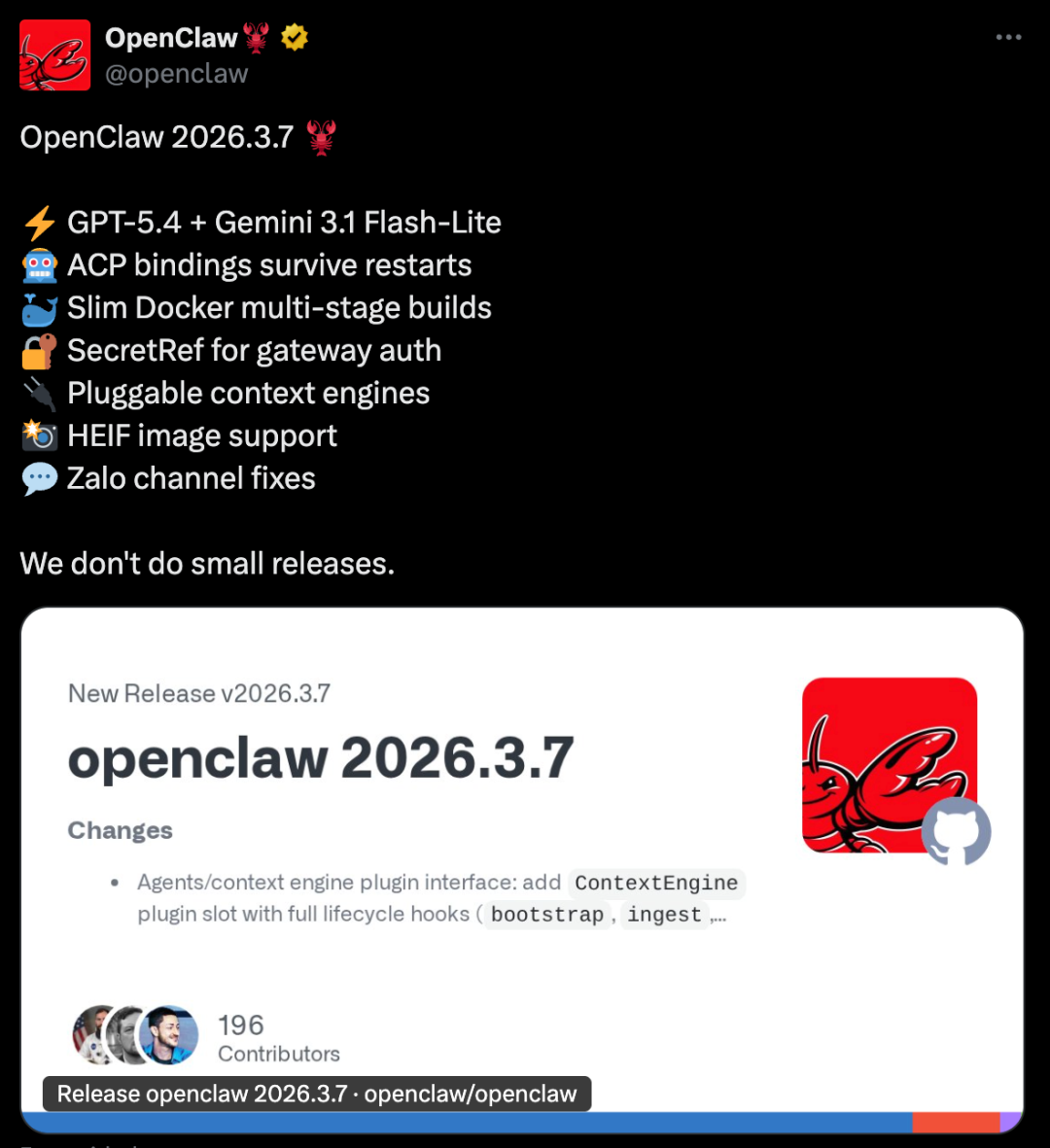 这次 v2026.3.7 更新,核心是三个方面: