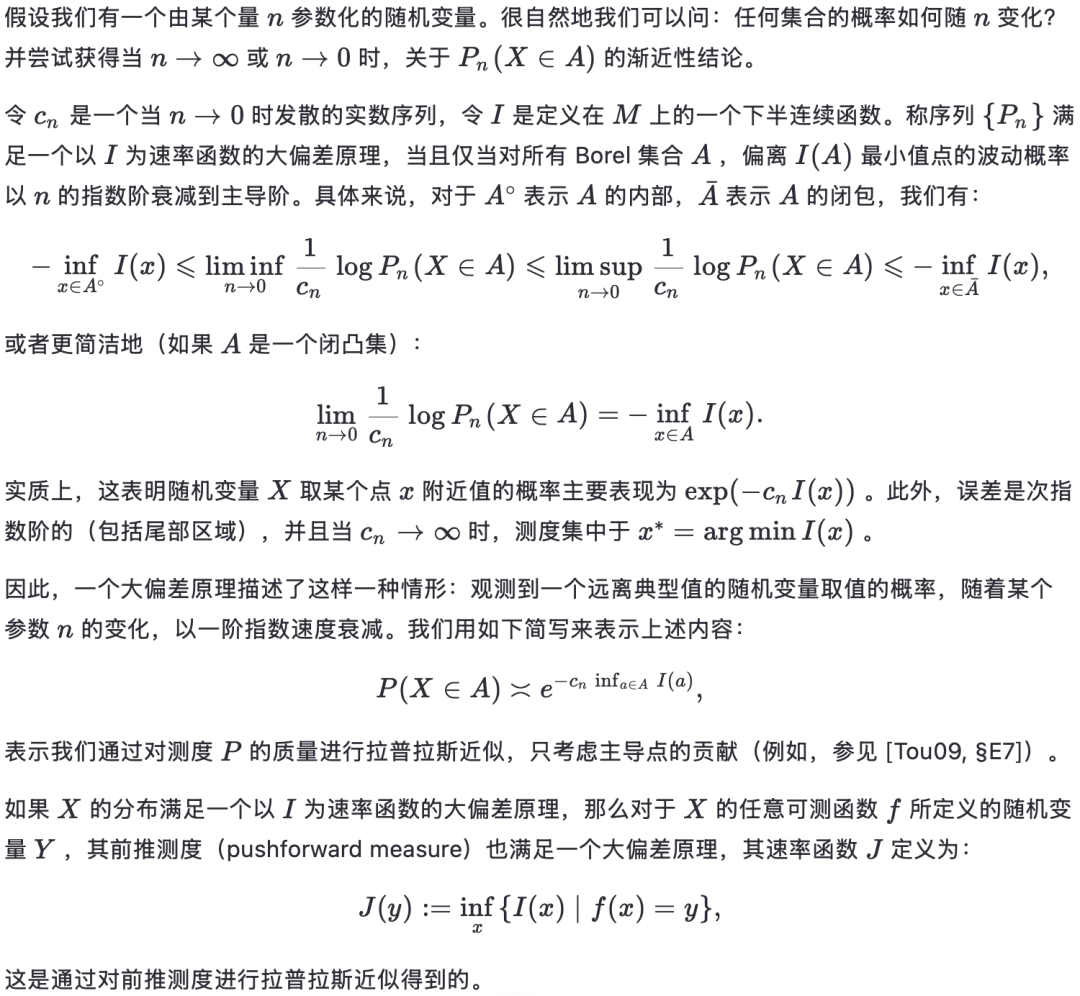 在本节中,我们将回顾大偏差理论 以及在大偏差背景下的最大熵原理 。优秀的参考资料包括 [DZ10, Var16] 以及 [Kal21, 第24节]。