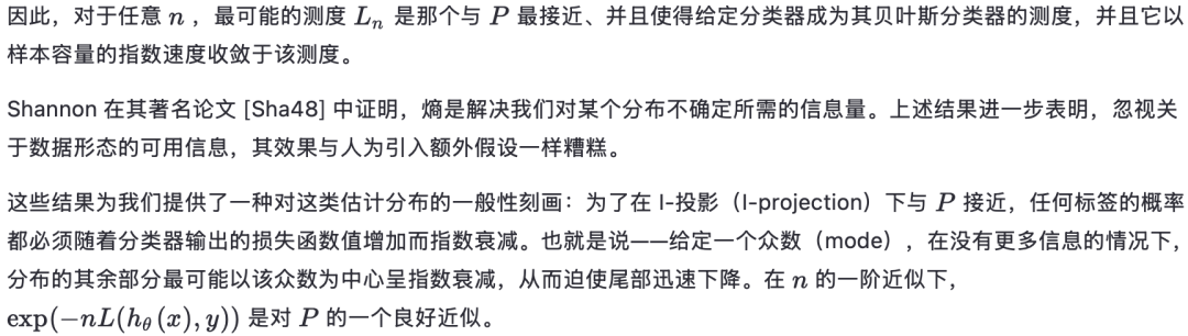 推论 3.1 。对于一个固定的误差函数和分类器,标签的概率呈指数衰减,且众数就是分类器的输出。因此,对误差速率函数进行压缩(contraction)后,可以得到一个针对分类器的速率函数,其众数是 P的贝叶斯分类器的输出。