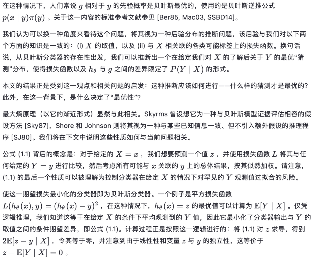 引理 3.1 。对于任何给定的连续损失函数,使相对熵在 P(Y∣X)之外全局最小化的分布,当 hθ(x)被固定为 P(Y∣X)的贝叶斯分类器时,能够达到最小的条件期望误差。