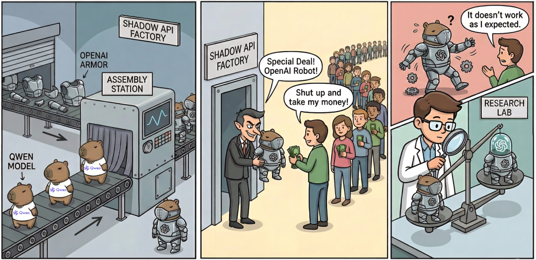 Shadow API:影子API,第三方LLM API服务,声称提供官方模型访问但实际可能替换模型,因其底层模型的不透明,又是API方式向用户提供服务,故称为 Shadow API。
