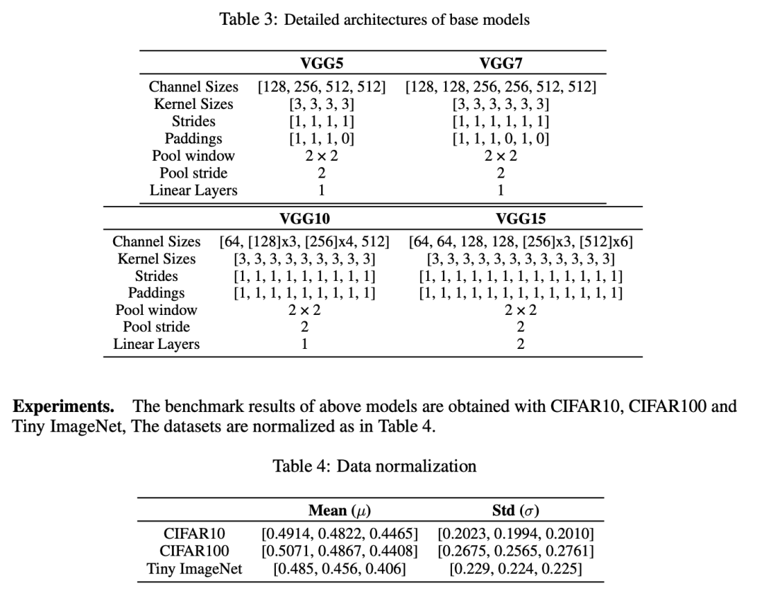 A 实验设置 模型。我们在四种模型上进行了实验:VGG5、VGG7、VGG10和VGG15。这些模型的详细架构在表3中呈现。