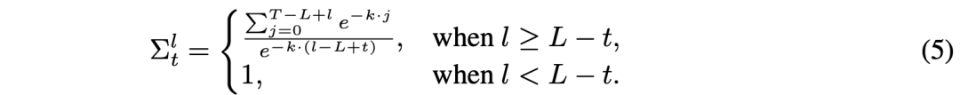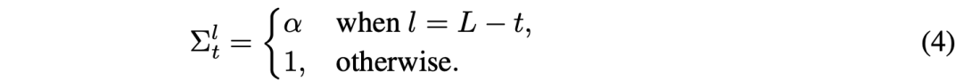在这里,分子的求和项作为一个归一化项,确保在时间上各层精度的总和等于 1,即满足: