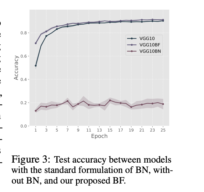 BatchNorm 冻结(BF, BatchNorm Freezing) 。BatchNorm 被证明在稳定深度神经网络训练方面起到了关键作用,因为它缓解了与梯度相关的问题,并确保了梯度的平稳传播。在训练过程中,它通过以下函数对层的激活值进行归一化处理: