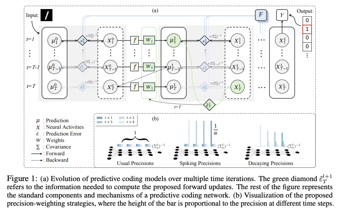 解决这种能量失衡需要能够随着能量在网络中传播而自适应调节不同层能量的机制——这一挑战与生物神经系统通过基于精度的调节解决的问题惊人地相似 [Clark, 2013, Mumford, 1992]。在大脑中,信息流实际上被认为受到精度加权的强烈影响,这是一种动态重新调整误差项的机制,有效地平衡了不同大脑区域之间的自上而下和自下而上的信号 [Rao and Ballard, 1999, Friston, 2005, Friston and Kiebel, 2009, Clark, 2013]。尽管精度加权在生物系统中扮演着核心角色,但在机器学习应用中却一直被忽视,而且在实验设置中,当在算法描述中被考虑时,通常被设置为 1 [Whittington and Bogacz, 2017, Salvatori et al., 2023, Song et al., 2020]。受这一神经科学原理的启发,我们提出利用精度来调节预测编码网络中的能量传播,旨在通过解决识别到的能量失衡问题,提高其在图像分类任务中的性能。我们通过首先分析深度卷积架构的能量传播,然后提出时间依赖的精度来解决这些问题。结果表明,这大大提高了测试准确率,从而证实了我们关于能量传播与实证结果之间因果关系的假设。我们的贡献简要如下: