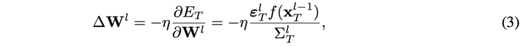 为此,我们提出一种方法:当能量——最初集中在输出神经元中——首次传播到某一层时,使该层的精度产生一个与学习率成比例的脉冲(spike)。从时间调度的角度来看,这种情况发生在 l = L − t 时。对于一个具有 L 层和 T 个推断步的网络,所提出的脉冲精度形式如下:
