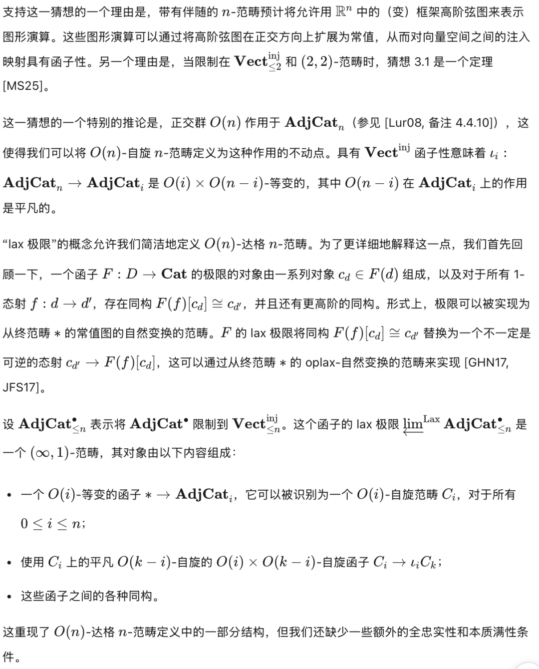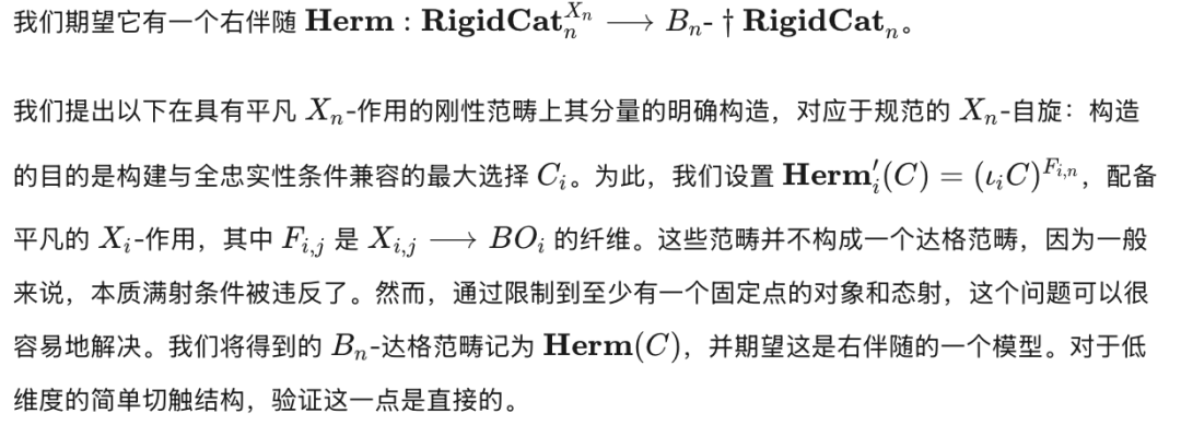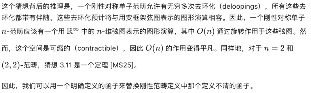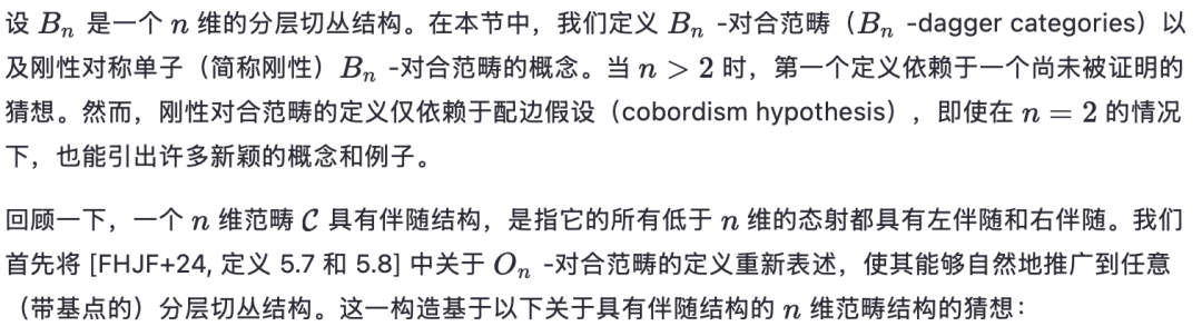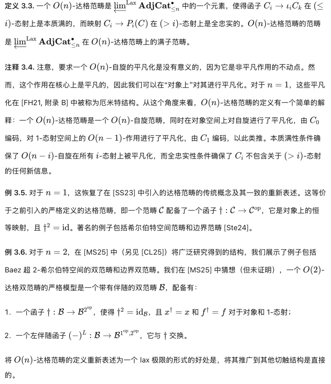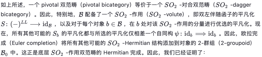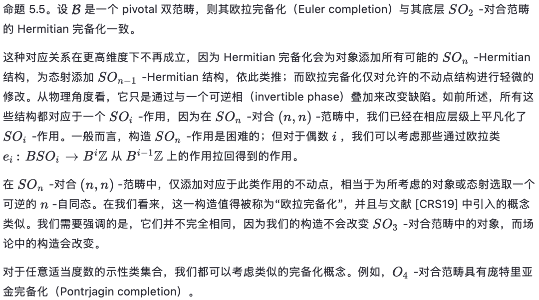 上述两个例子中,拓扑缺陷范畴所携带的额外结构都有一个共同特征:它们都包含从范畴论角度看“不自然”的条件——要求对象或 1-态射相等而非同构:(-)† 在对象上是恒等,且左右伴随相等。我们认为,这并非缺陷,而是该构造的本质特征,任何描述缺陷的一般数学框架都应具备这一点。