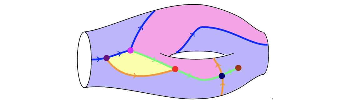对于左伴随,以及右伴随的类似条件。 pivotal 双范畴的标志性特征是左右伴随相等,这是定向缺陷所特有的。 范畴结构与所允许缺陷类型之间存在一个有趣且富有成果的相互作用: “层”(strata)的弯曲使得我们能够在 pivotal 双范畴 [CR16] 以及三维情形下的带对偶 Gray 范畴 [BMS24] 中形成如下所示的图形,而这些图形在普通高阶范畴中是无法求值的: