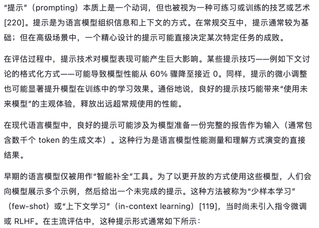 随着2024年底至2025年初推理模型的兴起,模型行为发生了一次重大转变:即在每次回答前都会自动进行长链的“思维链”(Chain-of-Thought, CoT)推理过程。这些模型不再需要依赖如[224]中提出的“请一步一步思考”这类标准提示语来激发推理行为。