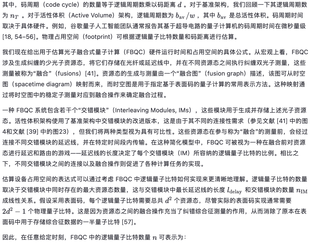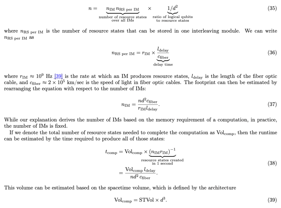 为了获得实际的运行时间和空间需求,我们对基于光子融合的容错量子计算机的设计特性进行了务实的综述。例如,在这类设备中,“交错模块”(interleaving modules, IMs)的数量成为描述量子计算机物理尺寸的关键指标。对于光子容错量子计算机而言,物理量子比特的数量(在其他架构中常被引用)对设备占地面积几乎没有意义,这是由于一种称为“交错”(interleaving)的特性 [41]。通过将纠缠光子存储在光纤中,交错机制实现了物理运行时间与交错模块数量之间的权衡,从而将纠错码距离与设备的物理尺寸解耦。