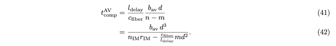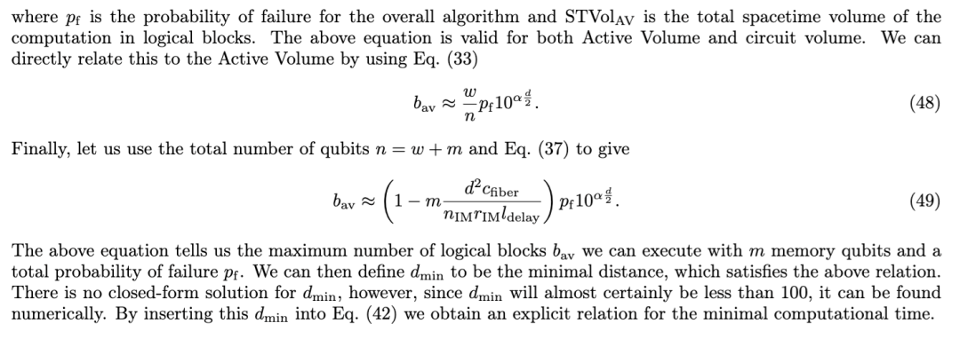 对于这两种计算,我们保持IM数量不变,并区分α = 1的乐观场景和α = 0.5的现实场景。在所有情况下,总墙钟速度大约为476倍。使用光纤长度来调整交错量,占用空间与考虑的计算运行时间进行权衡。延迟长度越短,每个交错模块的资源状态比例越低,这使得计算更快,但增加了所需的交错模块数量。