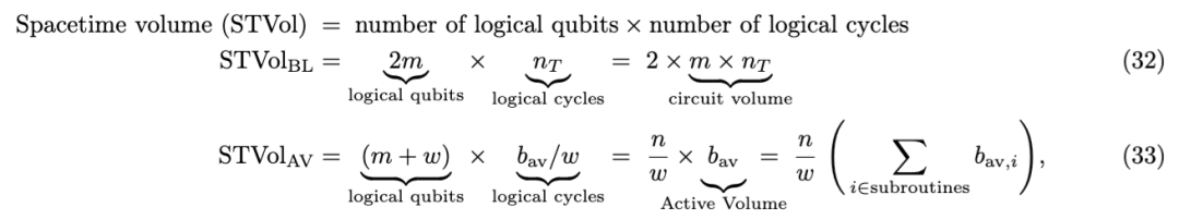 由于时空体积是计算中两个主要资源——量子比特数量和时间——的乘积,因此该指标能够很好地反映这两者之间的权衡关系。量子架构决定了逻辑量子比特的布局以及逻辑操作的实现方式,因此架构的选择会对时空体积产生深远影响。因此,我们的首要任务是分别量化基准架构和AV架构的时空体积。
