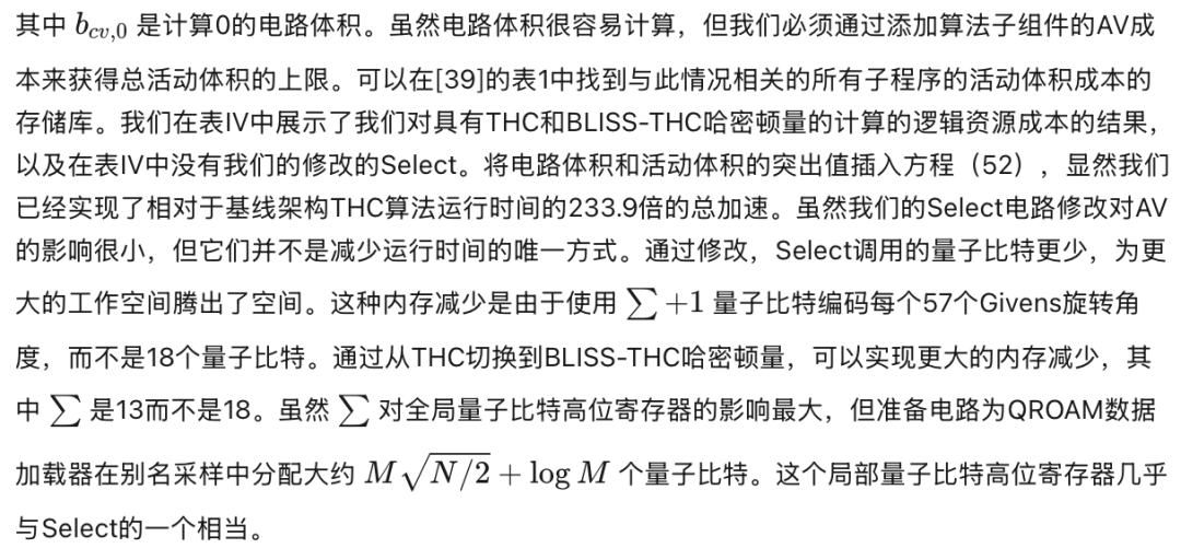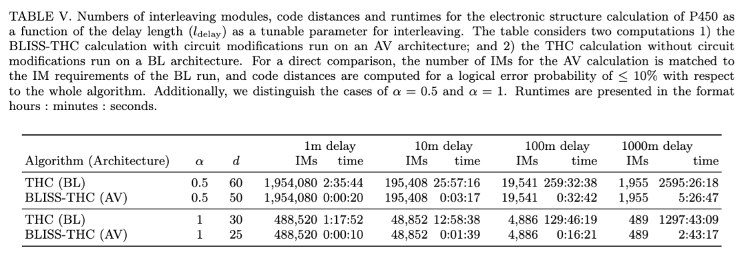 在表V中,我们最终展示了两种相关计算的运行时间、IM数量和码距:在基线架构上运行的[26]中的THC算法,以及在AV架构上运行的我们的BLISS-THC算法。