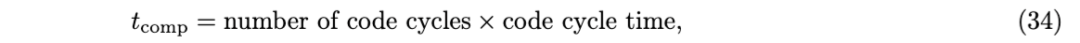 我们将首先量化逻辑资源,然后将这些估算值转换为物理资源数量。对于上述两种架构,衡量逻辑资源的标准指标是“时空体积”(spacetime volume)。粗略地说,时空体积可以通过将逻辑量子比特的数量乘以完成计算所需的逻辑周期数来计算。一个逻辑周期包含 d 个码周期,其中 d 表示纠错码距离(code distance),而一个码周期是指测量所有纠错综合征(syndrome)所需的时间。我们通常以逻辑周期为单位来衡量时间,因为一个逻辑周期正是实现一次格子外科手术操作所需的时间 [50]。