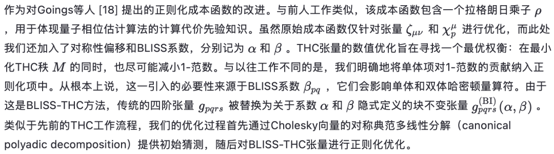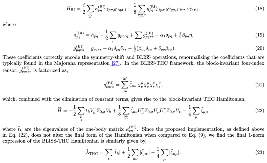 尽管最近的研究表明,先前的THC实现方案在谱界方面与传统的对称无关方法相比仅相差2到3倍,但在P450的S = 5/2对称性扇区中,它们仍比理论下界高出4到5倍。我们通过提出一种块不变对称性偏移的张量超压缩(BLISS-THC)方法来改进这些结果。为了提供一个既能适用于标准THC表示、也能适用于BLISS-THC的统一框架,本节的结果采用哈密顿量的马约拉纳表示形式,其中