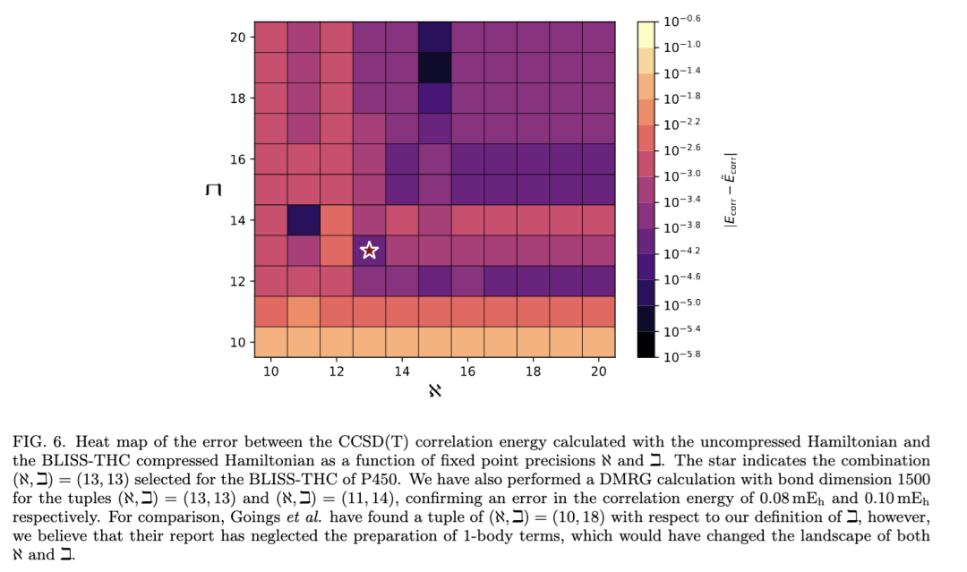 在本研究中,我们充分考虑了上述各个方面,从而能够以细胞色素P450中的血红素基团为例,全面展示分子体系电子结构计算的最新进展。其中一项重要改进是引入了BLISS-THC方法,这是分子系统量子模拟领域一系列递进式技术进步中的最新前沿成果,且适用于所有类型的量子架构。为了使BLISS-THC在数值上可实现,我们大幅降低了所有类型THC方法所需经典预处理的运行时间。目前,在单个消费级Nvidia GeForce RTX 4090 GPU上,对一个P450哈密顿量进行THC因式分解仅需约6分钟(外加6分钟的优化预热时间)。正因如此,我们得以对P450哈密顿量实施更为紧凑的因式分解流程。BLISS-THC不仅改善了哈密顿量的1-范数,还降低了张量的因式分解秩。此外,我们将经典预计算的开销降至极低水平,使其相较于以往方法已几乎可以忽略不计。这消除了基于成本函数的方法相较于基于对角化的双重因式分解(DF)等方法的一大劣势。