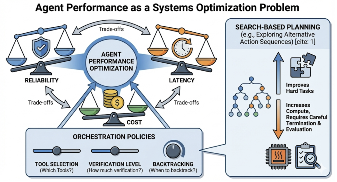 系统优化(Compute Allocation):在实际部署中,关键是“预算分配”:何时花费额外的计算进行搜索或反思,何时快速执行。搜索式规划(Tree-of-Thoughts)和自我一致性(Self-consistency)在错误时引入额外的成本(采样、搜索深度),但显著提升了可靠性。