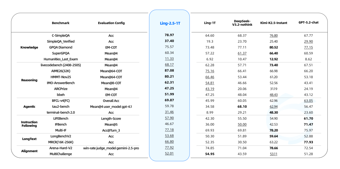 更具体的细节可以看蚂蚁官方这篇:Ling-2.5-1T,普惠智能,即时响应。