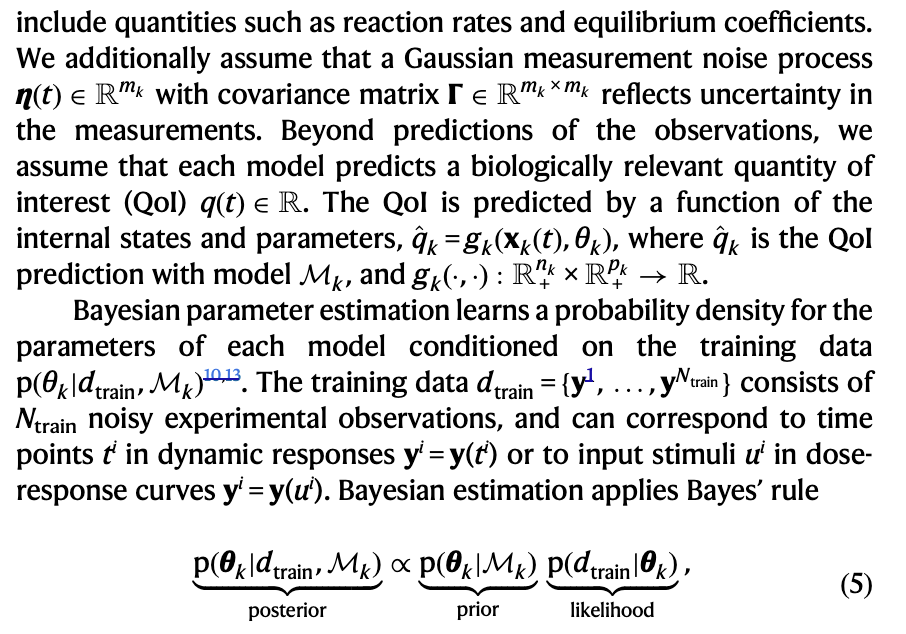 在本节中,我们简要概述贝叶斯参数估计方法。关于系统生物学背景下的更多细节,请参见文献11,12;关于一般理论的更深入内容,请参见文献10,13。
