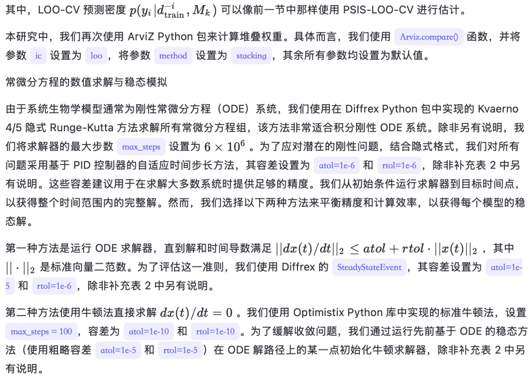 未来MMI在系统生物学中的发展应聚焦于采用计算高效的参数估计方法,并探索学习时变MMI权重的技术。MMI需要对每个指定模型重复进行贝叶斯参数估计,这可能给建模研究带来巨大的计算负担(例如,补充表3中的推理运行时间)。加速贝叶斯估计的方法,如变分推断(variational inference)59或拉普拉斯近似(Laplace approximation)28,可在提供近似不确定性量化的同时,使MMI适用于参数估计成本高昂的模型。此外,本文所呈现的MMI框架中,各模型的权重不随时间变化。然而,在存在显著时变特征的场景中(如细胞命运转变或发育过程),驱动生物过程的潜在机制可能发生改变,因此最适用的模型也可能随时间变化。在这种情况下,对MMI框架的扩展方法,如动态BMA16或多模型序列数据同化60,可能学习到随时间变化的模型权重,从而使MMI估计器能够随时间调整。