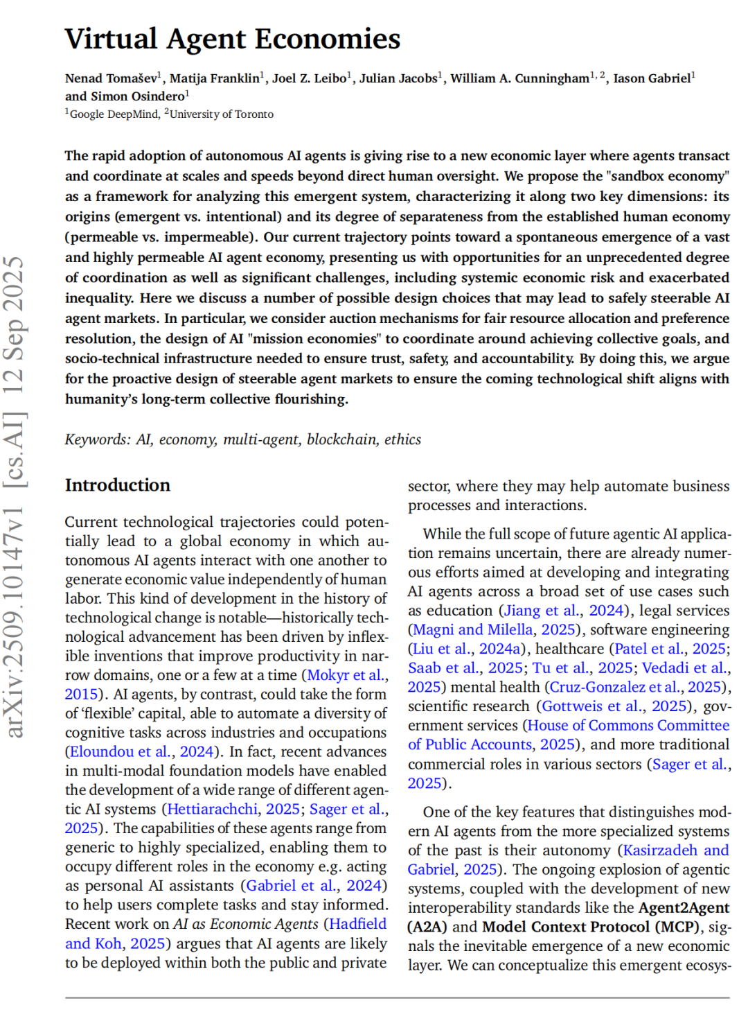 关键词:人工智能,经济,多代理,区块链,伦理