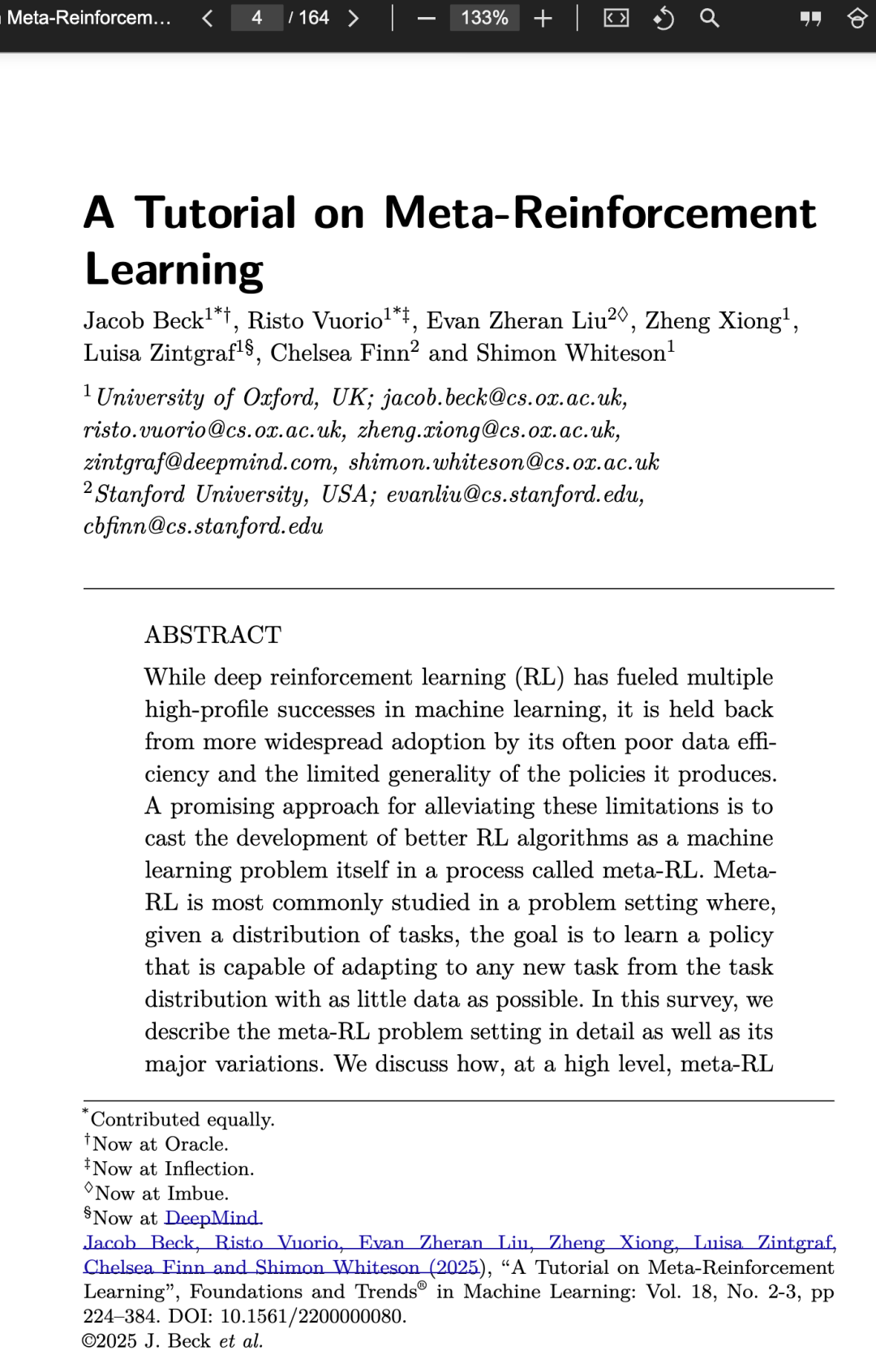 元强化学习教程 A Tutorial on Meta-Reinforcement Learning
