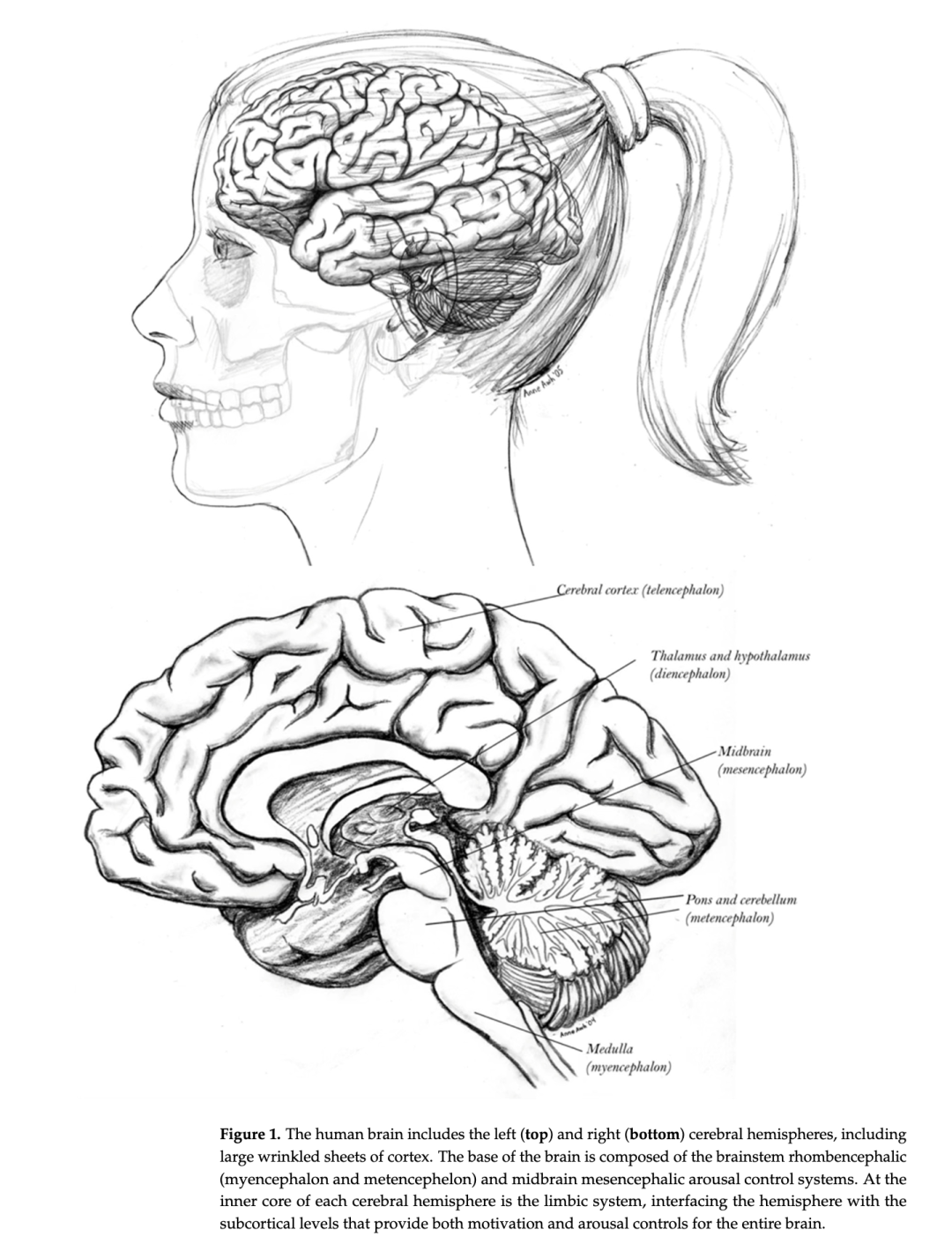 索尔姆斯(Solms)依据证据指出,中脑层面整合的皮层下结构[12]足以构成基本意识的基础,而大脑皮层仅起次要作用[13]。索尔姆斯既描述了中脑在调节警觉与唤醒中的关键作用,也提供了令人信服的皮层发育不全儿童的案例研究:尽管其社会行为受限,却仍表现出许多我们通常认为需要完整意识才能具备的特征。