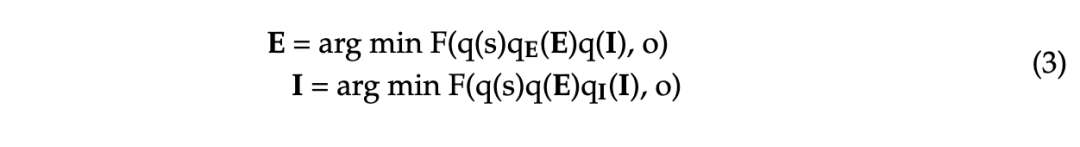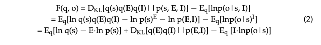 公式(2)是主动推理的“复杂性–准确性”表述形式,其中复杂性(E)和精度(I)增益分别应用于生成模型的两个组成部分,即先验和似然。人们普遍认为,神经调质系统控制着这些增益,使大脑动力学在兴奋性和抑制性状态之间循环,同时确保临界性——即维持恰当的平衡,使得复杂性约束永远不会丢失,同时观察数据又能持续为信念更新提供信息。临界性得以保证,是因为变分自由能被最小化,这一结论遵循文献[23]中的论证。